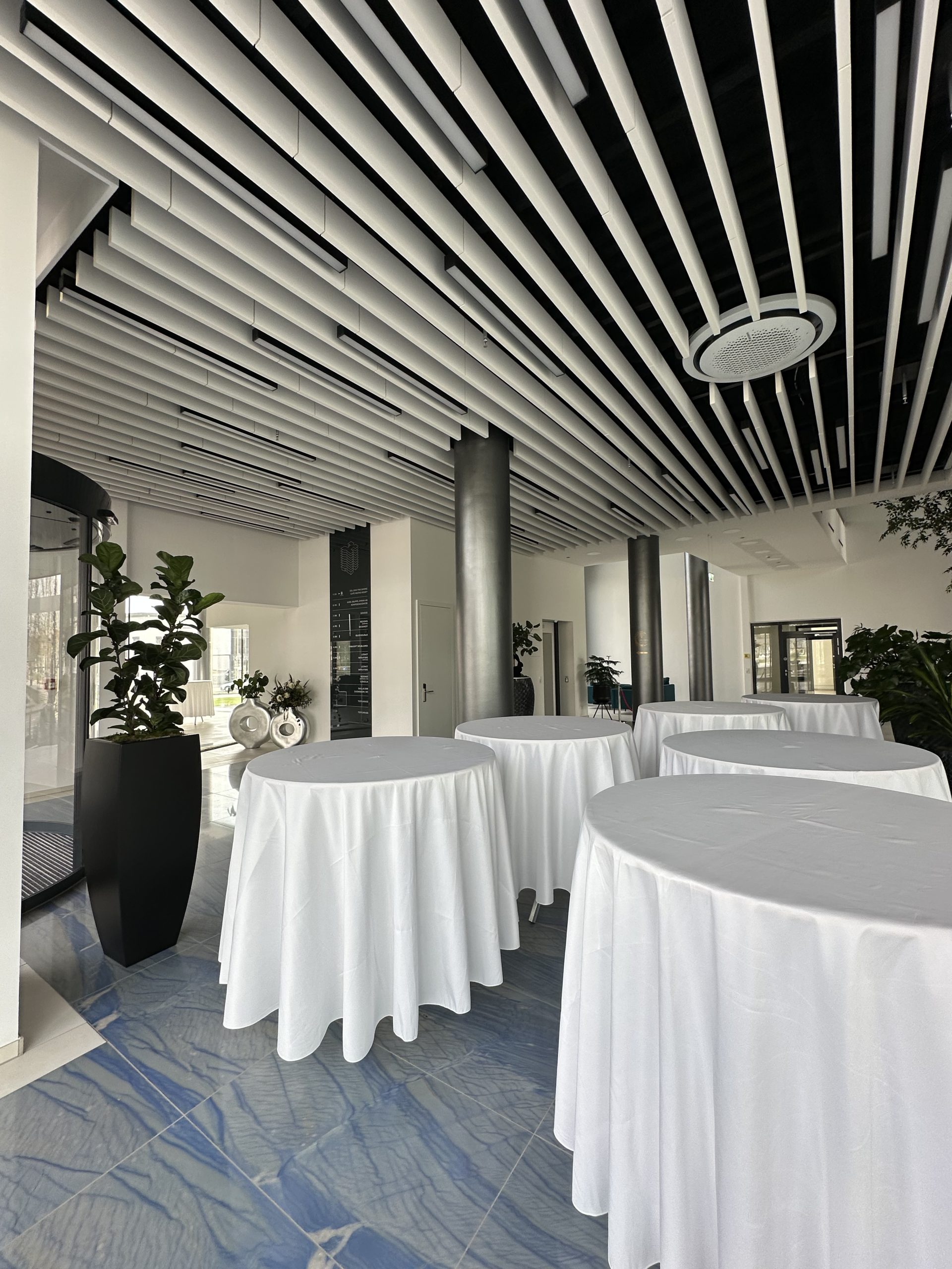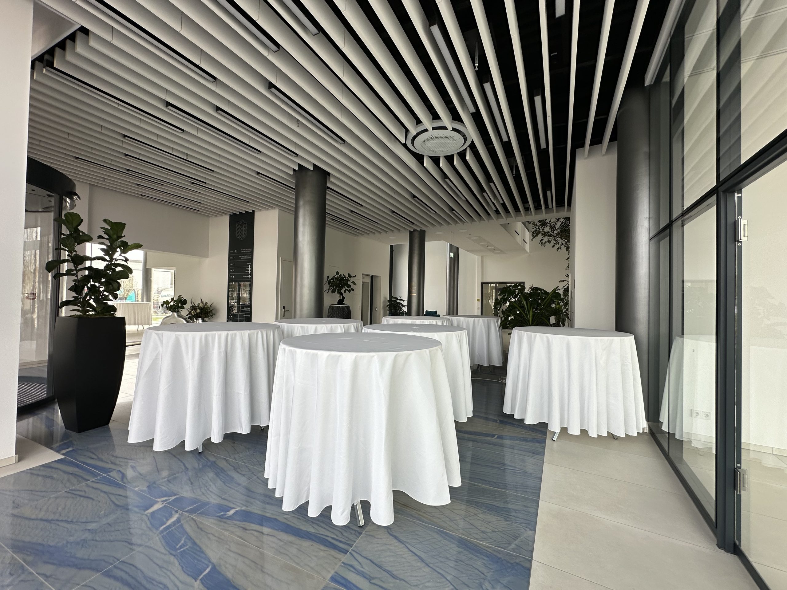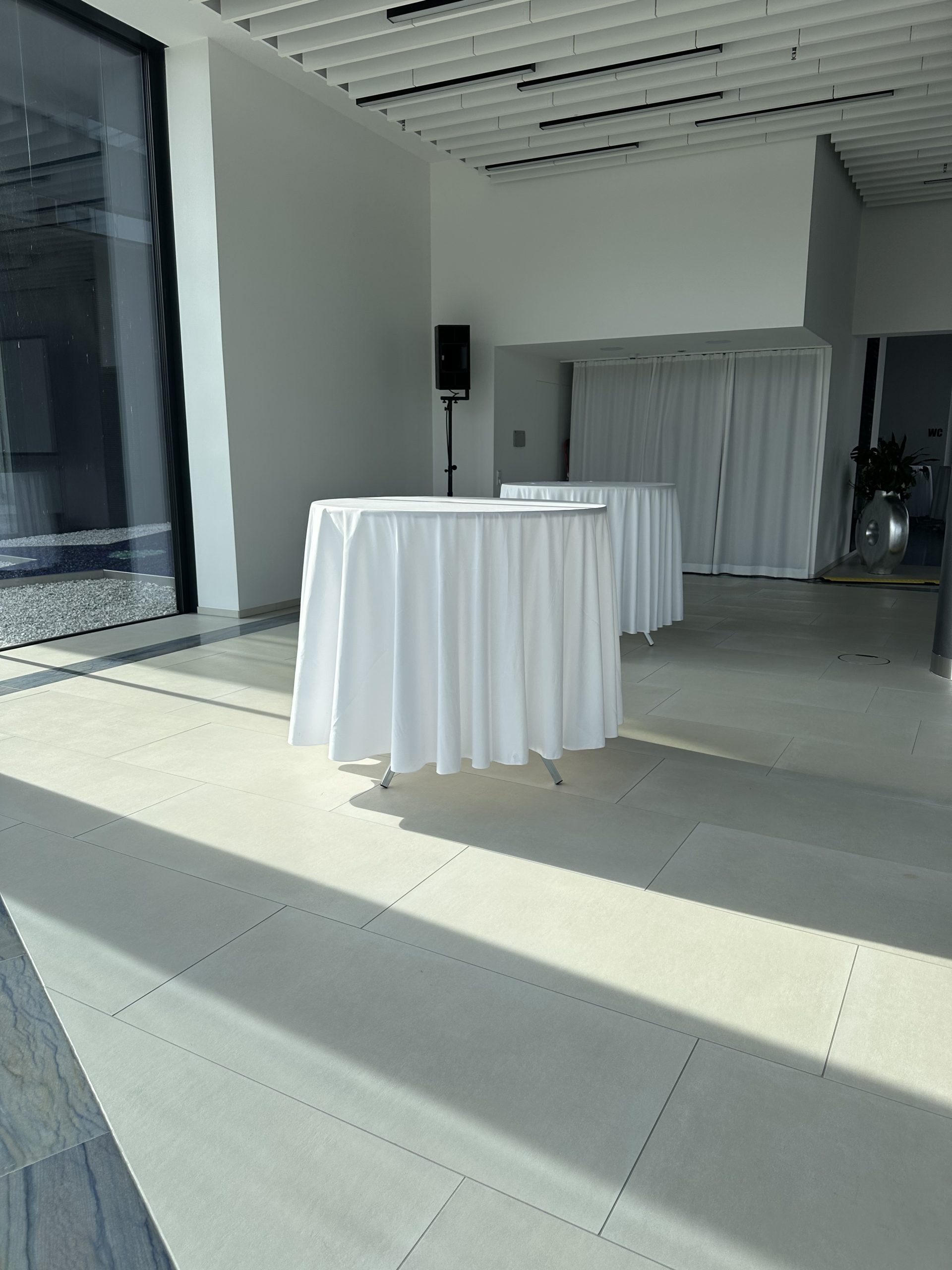 Weiße Tischdecken zur Miete für runde Tische (Ø 305 cm) – Eleganz für Ihr Event!